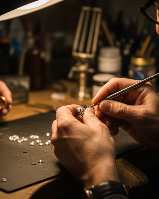Our commitment to excellence is reflected in every piece we create. We specialize in bespoke jewelry, working closely with our clients to design one-of-a-kind pieces that perfectly match their vision and style.